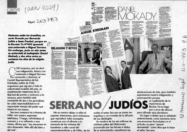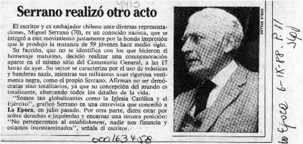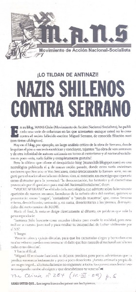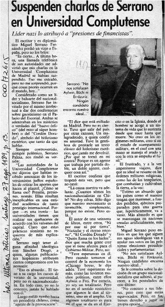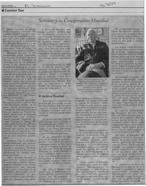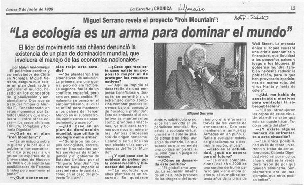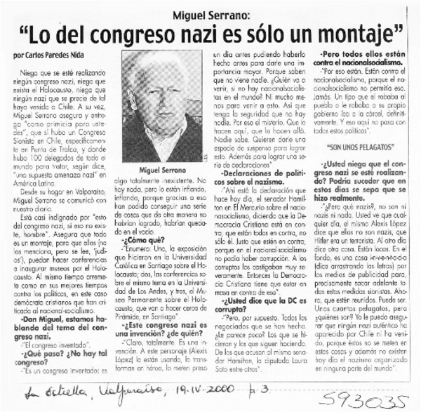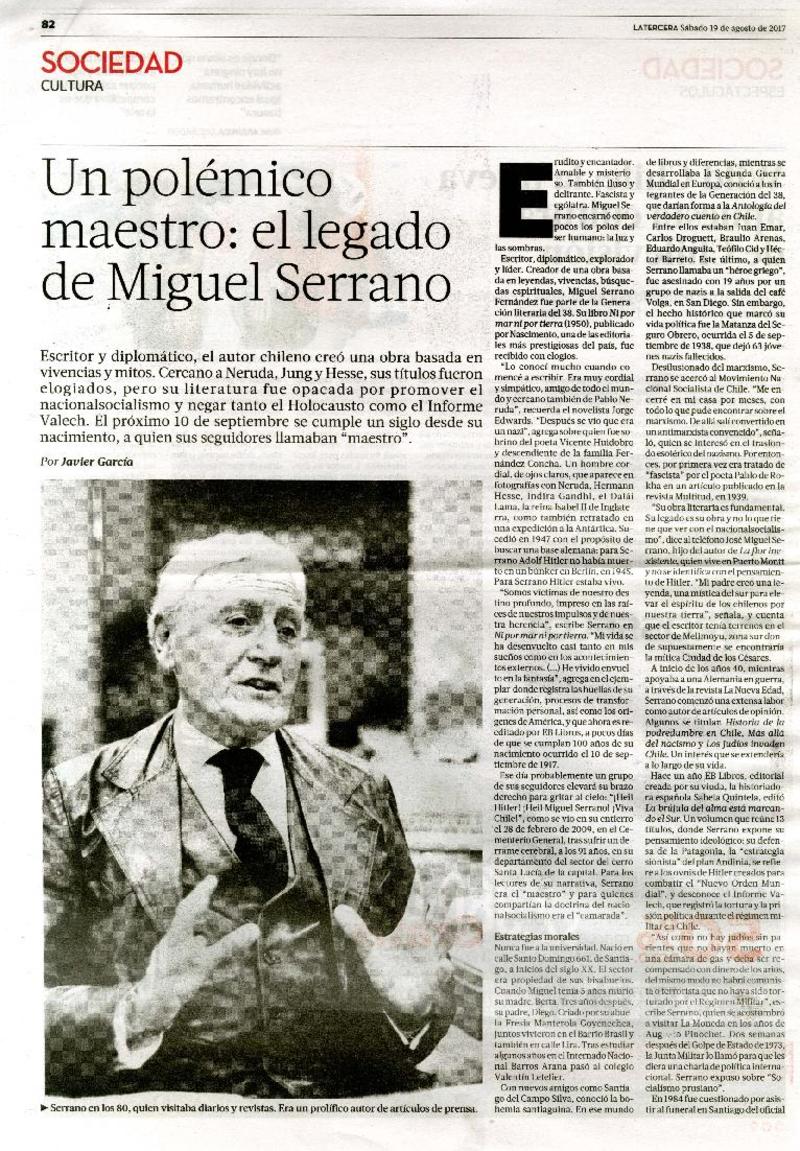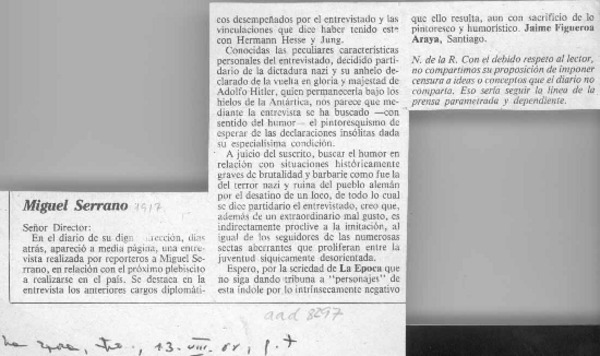 Protesta por "Informe especial" [artículo] Miguel Serrano.