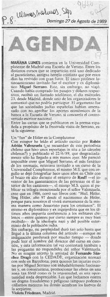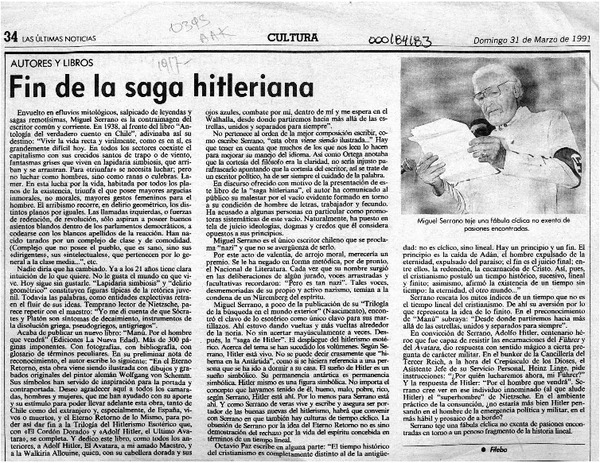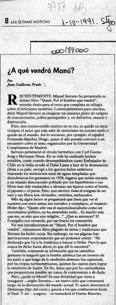 Presbítero Ibáñez refuta a escritor Miguel Serrano [artículo] José Miguel Ibáñez Langlois.
