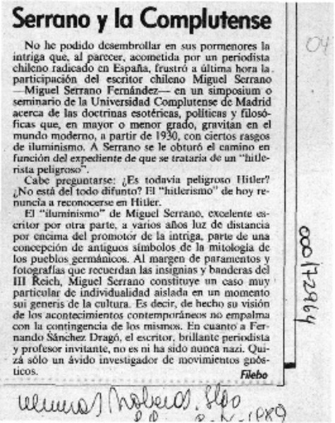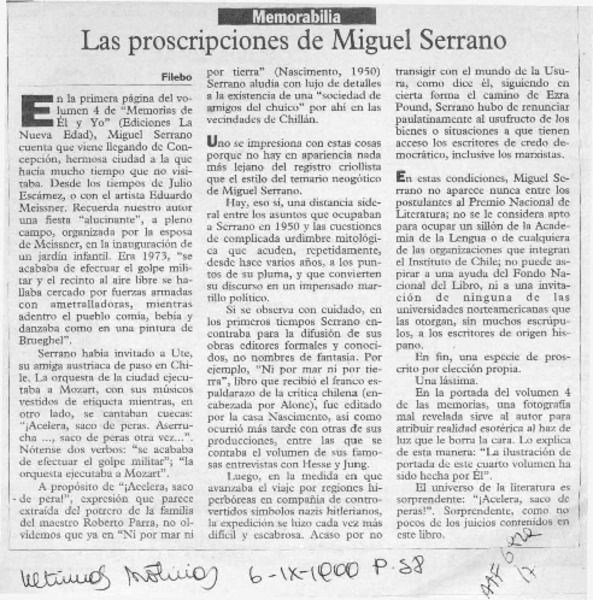 Las proscripciones de Miguel Serrano [artículo] Filebo.