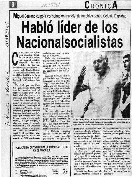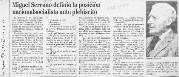 Miguel Serrano definió la posición nacionalsocialista ante plebiscito [artículo].