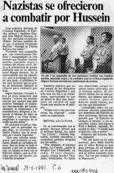 Nazis chilenos mandaron carta a Hussein ofreciendo ir a luchar por Irak [artículo].