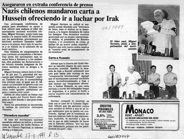 Nazis chilenos quieren combatir con Hussein. [artículo]