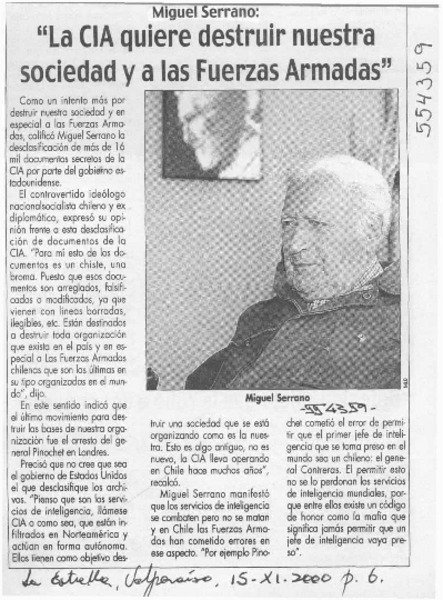 "La CIA quiere destruir nuestra sociedad y a las Fuerzas Armadas" [artículo]