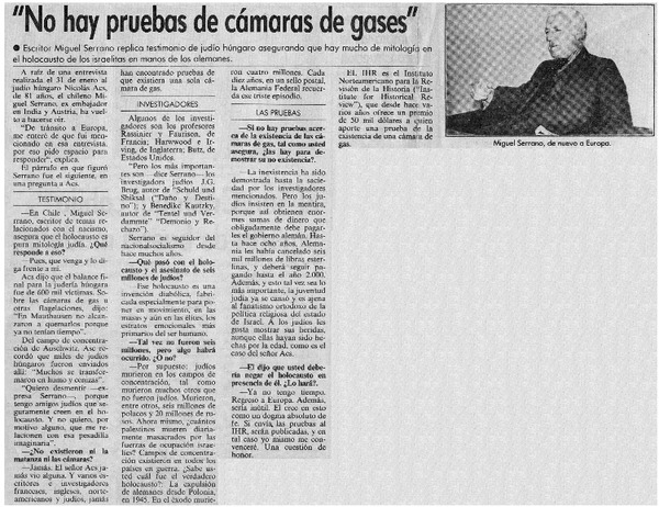 "No hay pruebas de cámaras de gases" : [entrevistas] [artículo]