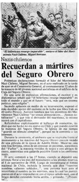 Nazis chilenos recordaron a muertos del Seguro Obrero. [artículo]