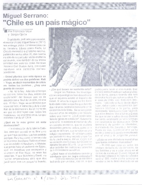 "Chile es un país mágico" [entrevista[ [artículo] Francisco Véjar <y> Sergio Ojeda