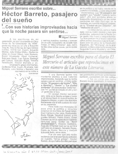 Héctor Barreto, pasajero del sueño [artículo] Miguel Serrano.