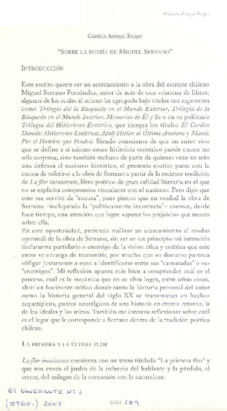 Sobre la poesía de Miguel Serrano [artículo] Cristián Arregui Berger.