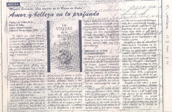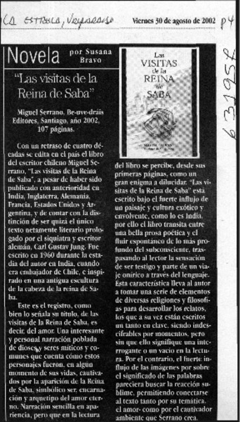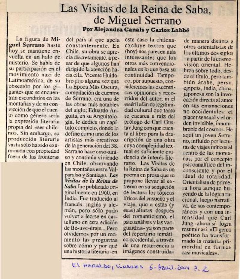 Autores chilenos - Serrano, Miguel - Visitas de la reina de Saba