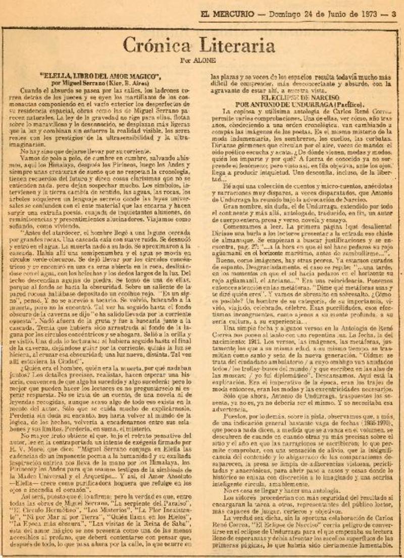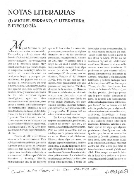 I) Miguel Serrano, o la literatura e ideología [artículo] Australis.