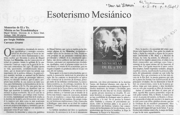 Esoterismo mesiánico [artículo] Sergio Melitón Carrasco Alvarez.