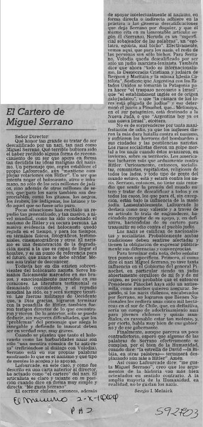 El cartero de Miguel Serrano [artículo] Sergio I. Melnick