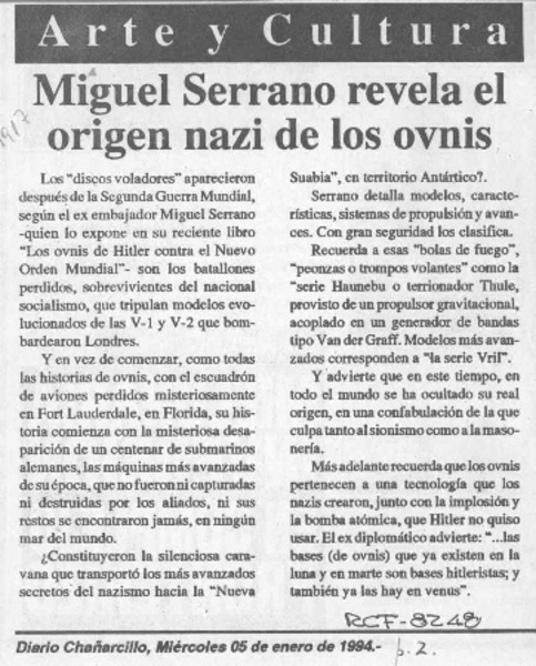 Miguel Serrano revela origen nazi de los ovnis [artículo].