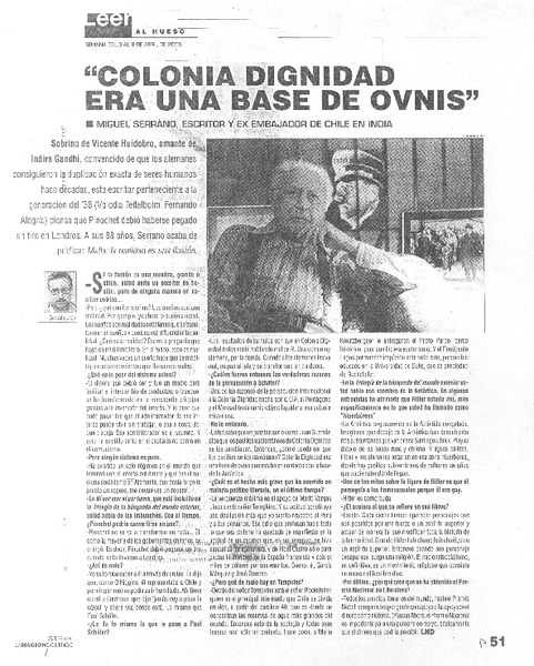 "Colonia Dignidad era una base de ovnis" (entrevistas) [artículo]Gonzalo Léon