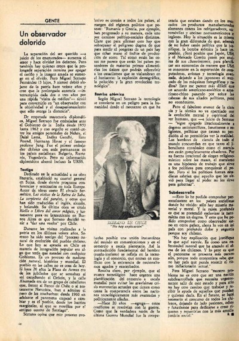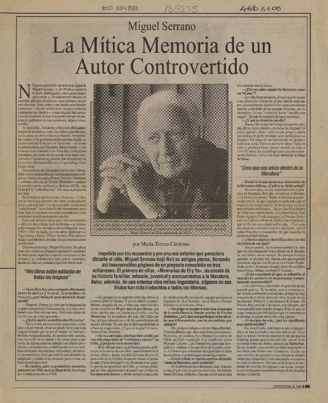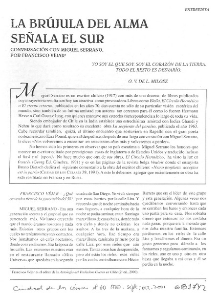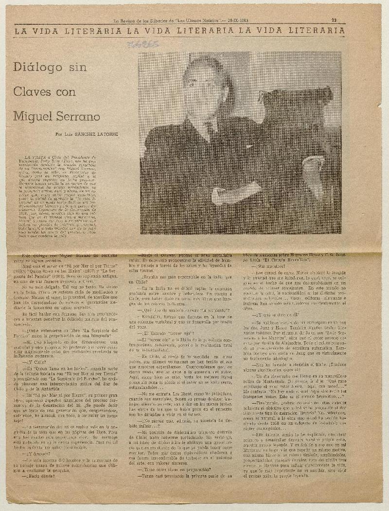 Autores chilenos - Serrano, Miguel - [entrevista]