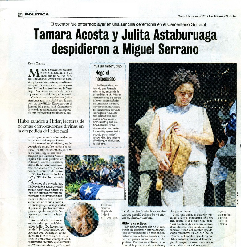 Tamara Acosta y Julita Astaburuaga despidieron a Miguel Serrano [artículo] Diego Zúñiga C..