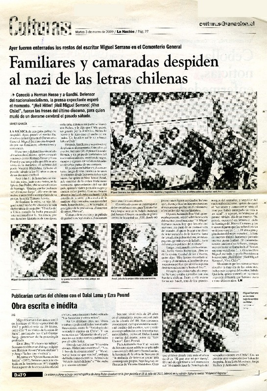 Familiares y camaradas despiden al nazi de las letras chilenas [artículo] Javier García.