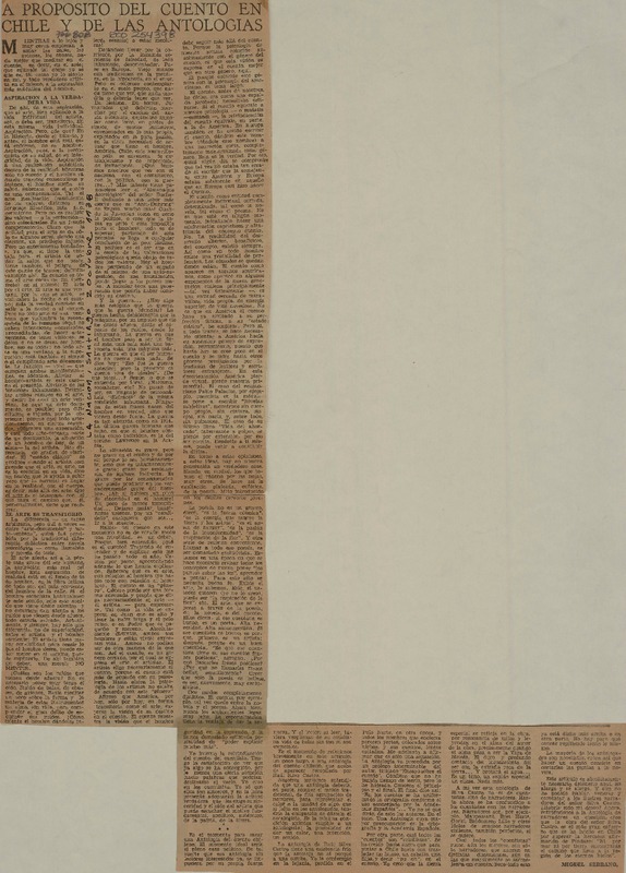 A Proposito del cuento en Chile y de las antologías. [artículo]