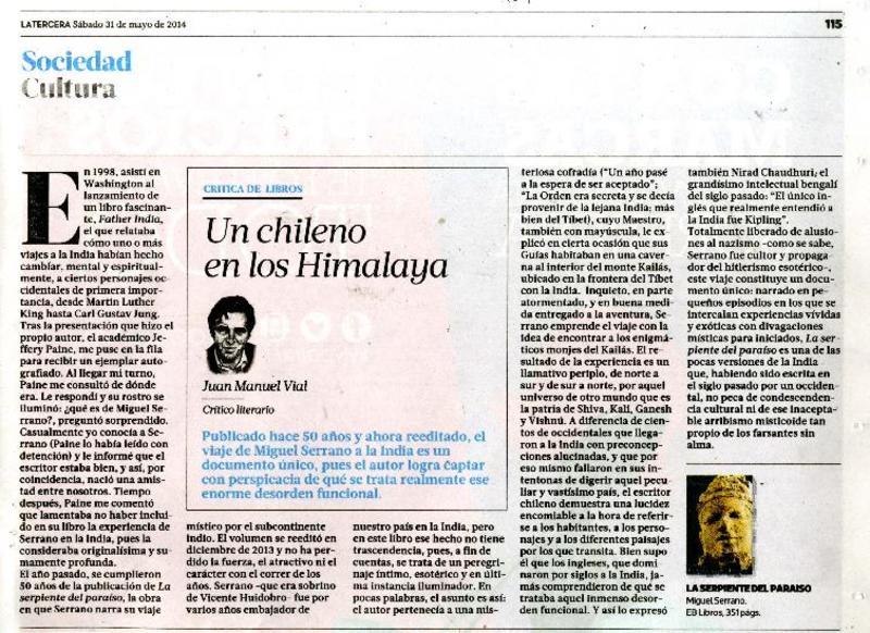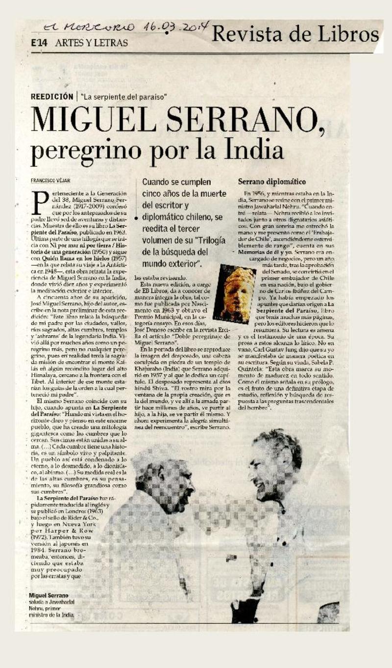 Rescatan La Serpiente del Paraíso, la crónica de Miguel Serrrano de su viaje por India [artículo] Roberto Careaga C.
