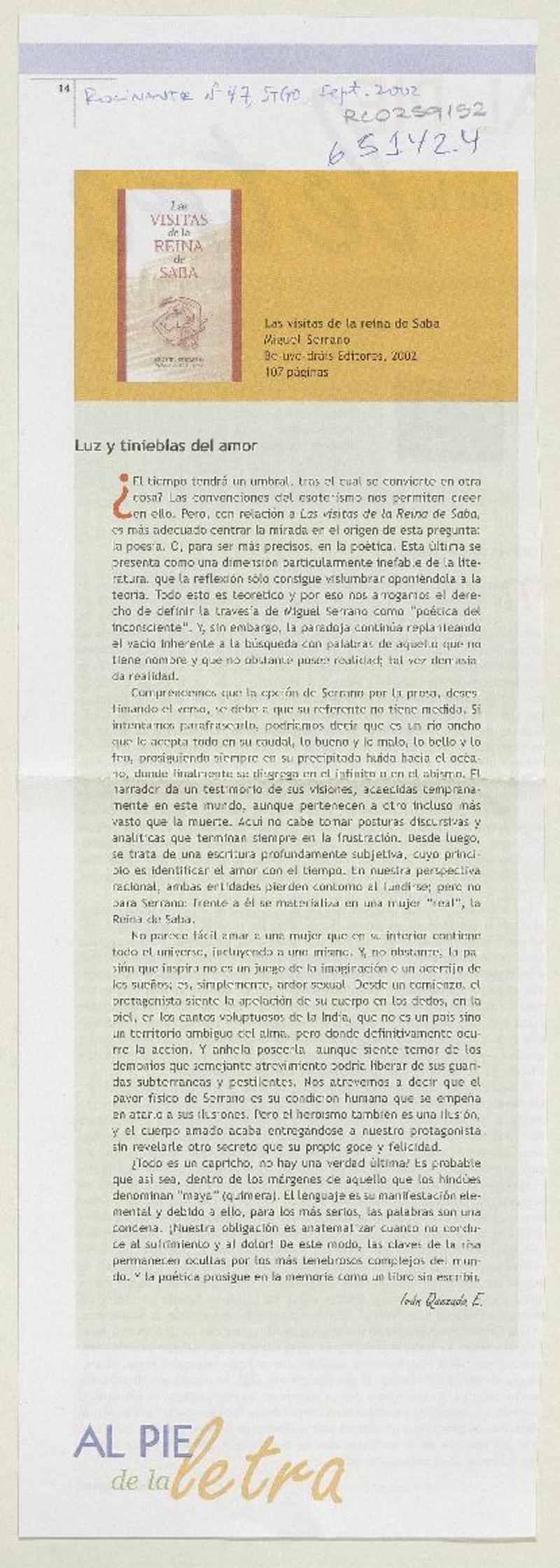 Luz y tinieblas del amor [artículo] Iván Quezada E.