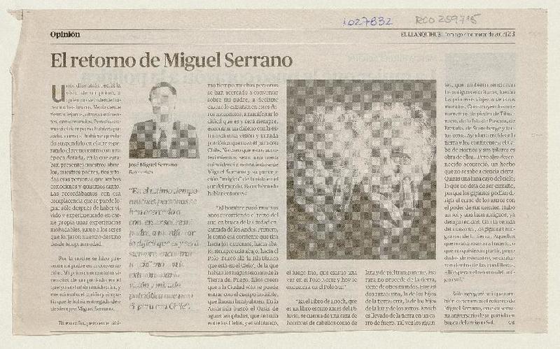 El retorno de Miguel Serrano [artículo] José Miguel Serrano.