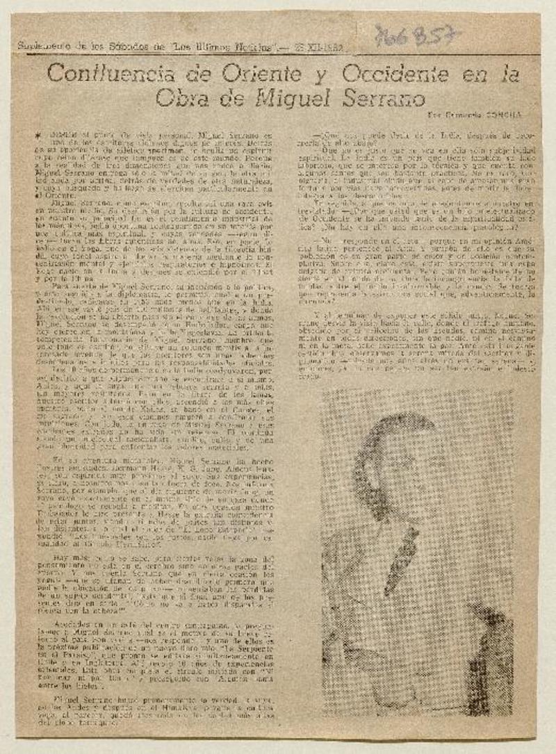 Miguel Serrano, una realidad paralela (3ra. parte) [artículo] por Leonidas Rubio.