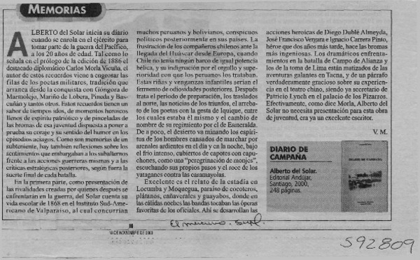 Solar, Alberto del - Autores chilenos - Diario de campaña