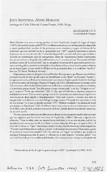 Hotel Marconi - Autores chilenos - Sepúlveda, Jesús