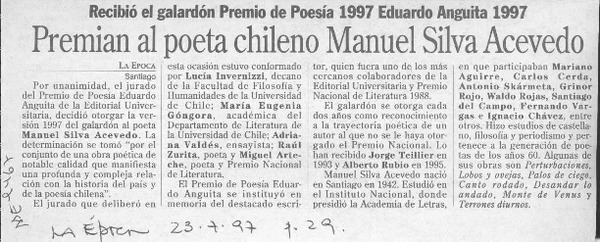 Premian al poeta chileno Manuel Silva Acevedo [artículo].