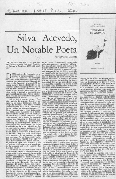 Silva Acevedo, un notable poeta [artículo] Ignacio Valente.