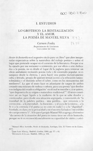 Lo grotesco ; la bestialización y el amor ; la poesía de Manuel Silva [artículo] Carmen Foxley.