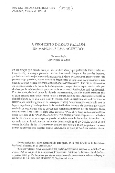 A propósito de Bajo palabra, de Manuel Silva Acevedo [artículo]Grinor Rojo.