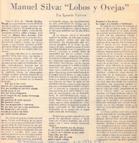 Manuel Silva: "lobos y ovejas" [artículo] Ignacio Valente.