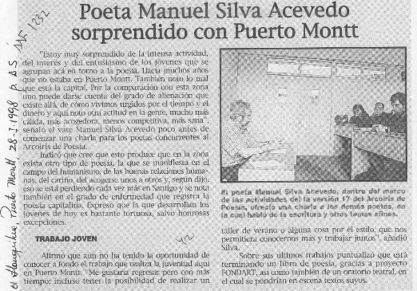 Poeta Manuel Silva Acevedo sorprendido con Puerto Montt [artículo].