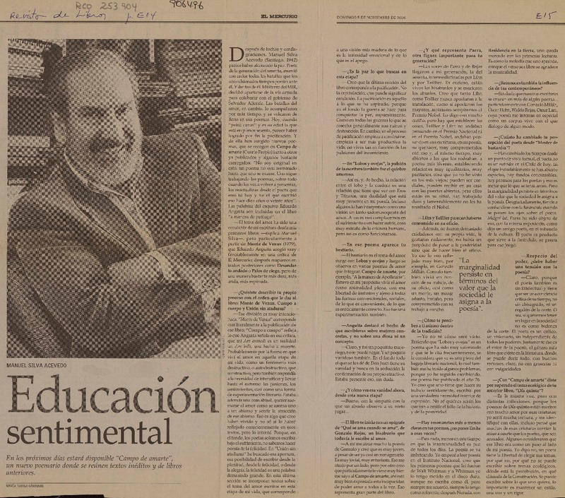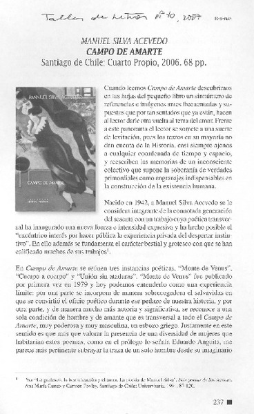 Autores chilenos - Entrevistas - Silva Acevedo, Manuel - Campo de amarte