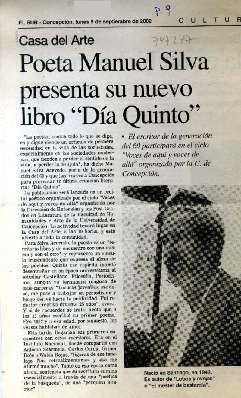 Poeta Manuel Silva presenta su nuevo libro "Día Quinto" [artículo].