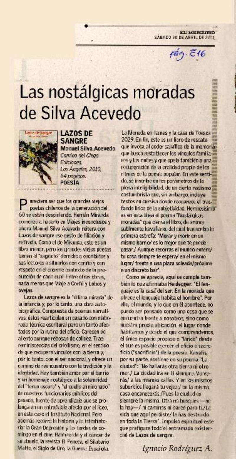 Las nostálgicas moradas de Silva Acevedo [artículo] Ignacio Rodríguez A.