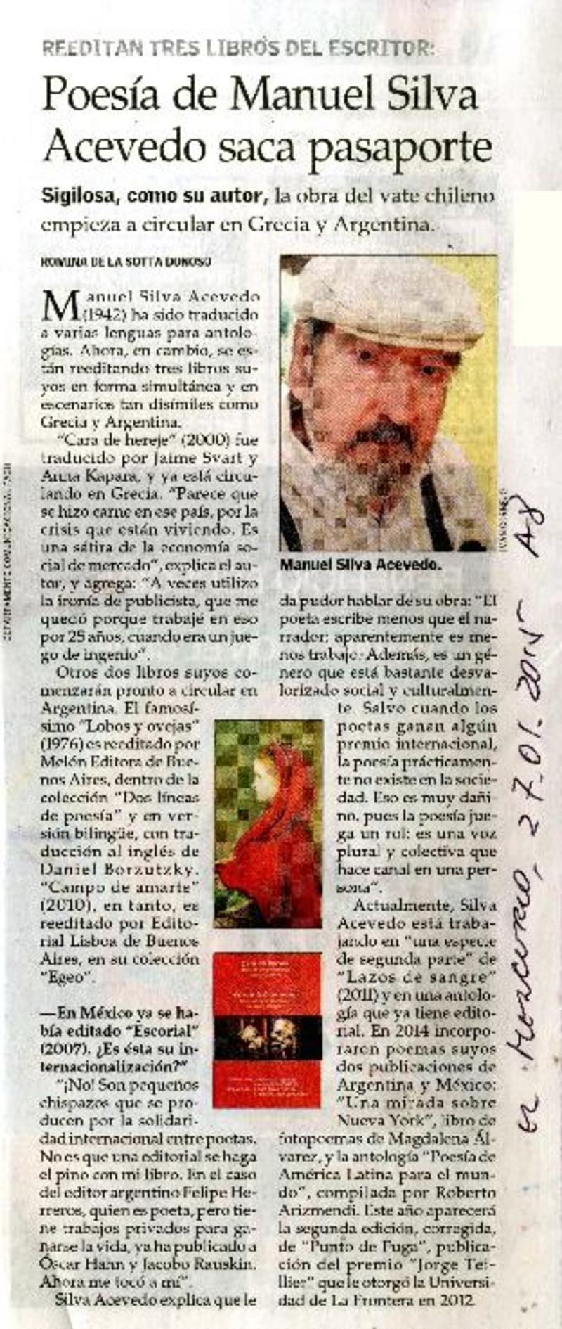 Poesía de Manuel Silva Acevedo saca pasaporte [artículo] Romina de la Sotta Donoso