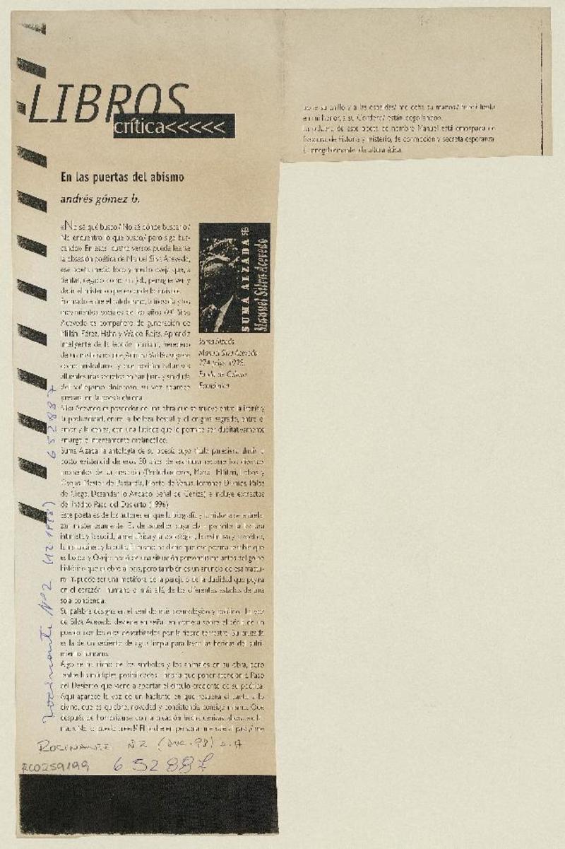 En las puertas del abismo [artículo] Andrés Gómez B.