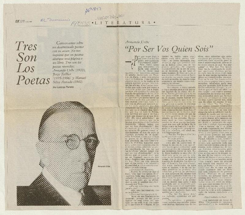Tres son los poetas (entrevista) [artículo] Lorenzo Peirano.