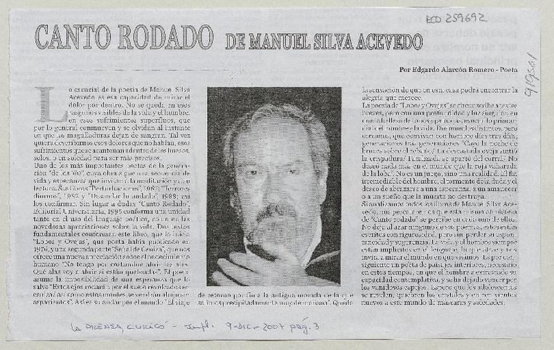 Canto rodado de Manuel Silva Acevedo [artículo]Edgardo Alarcón Romero.