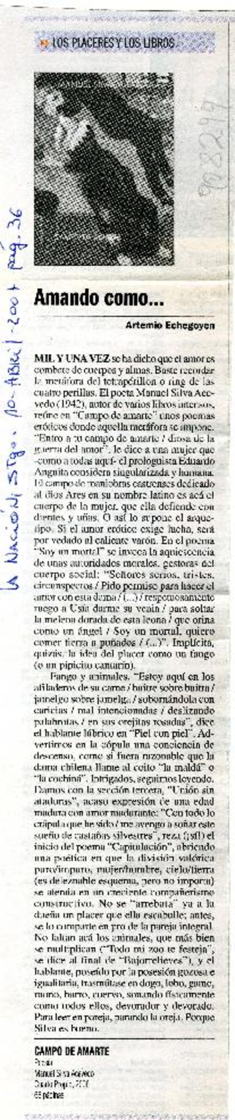 Autores chilenos - Silva Acevedo, Manuel - Campo de amarte