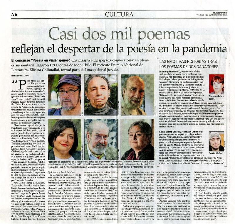 Casi dos mil poemas reflejan el despertar de la poesía en la pandemia [artículo] Elena Irarrázabal.