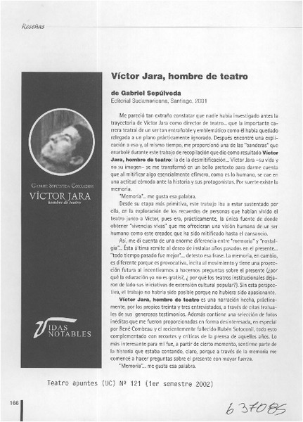 Autores chilenos - Sepúlveda Corradini, Gabriel - Víctor Jara, hombre de teatro