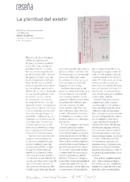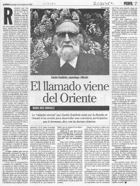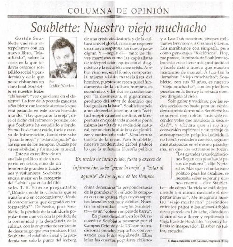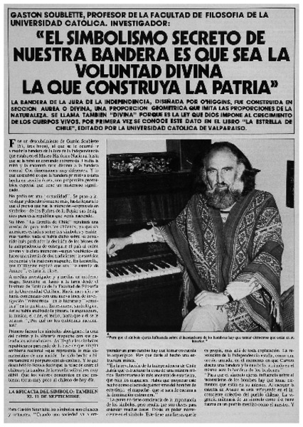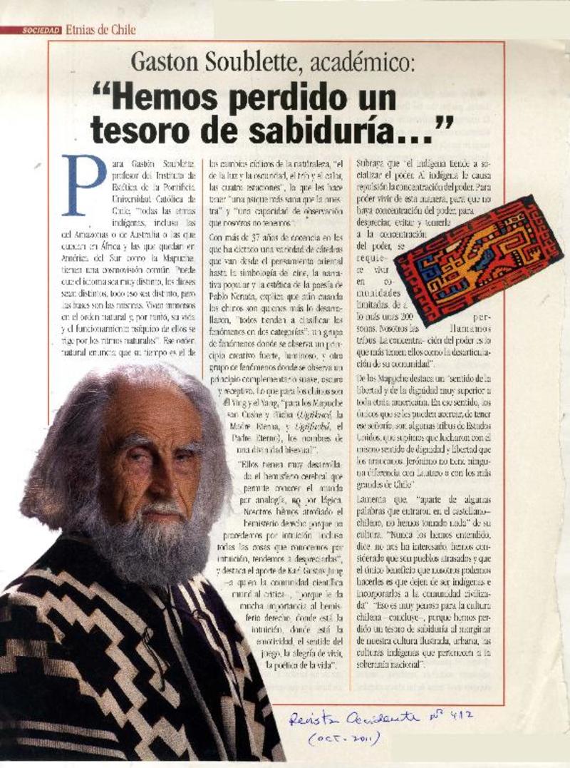 Gastón Soublette: "Este libro orienta nuestro destino" [entrevista] [artículo] : Maureen Lennon Zaninovic.