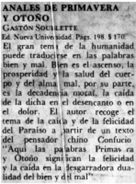 Autores chilenos - Soublette, Gastón - Anales de primavera y otoño