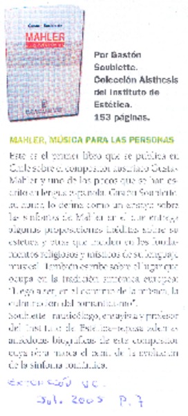 Mahler para los amigos [artículo] Gonzalo Saavedra.