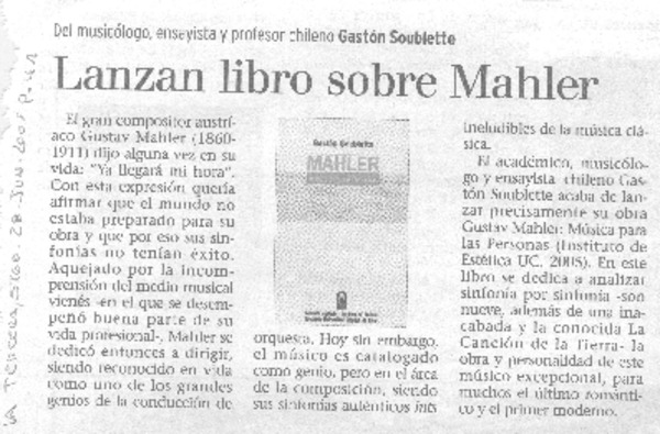 Soublette, Gastón - Mahler : música para las personas - Autores chilenos - Mahler, Gustav
