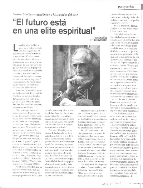 "El futuro está en una elite espiritual" [artículo]Carolina Zúñiga.
