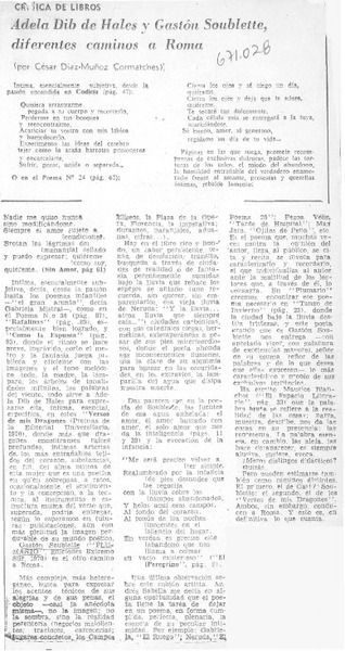 Adela Dib de Hales y Gastón Soublette, diferentes caminos a Roma [artículo] César Díaz-Muñoz Cormatches.